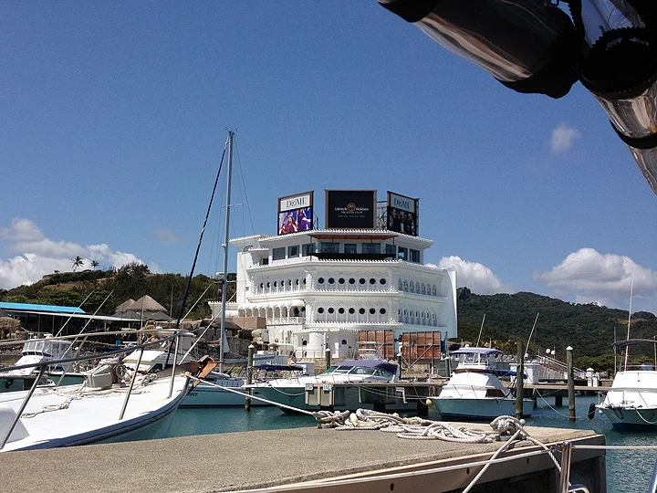 I mentioned that Ocean World is a full service marina. It is also a resort: a mini Las Vegas with its own mini Sea World adjacent. Three times a day, the same sequence of songs blasted out of the water park for the trained seal show: “Who Let the Dogs Out,” followed by The Pink Panther Theme, then some DJ’s mix of a diva belting disco over the backing track of Aha’s “Take On Me,” and closed with a reprise of the canine opener. After two days, we could mouth along with the emcee’s Spanglish narration.