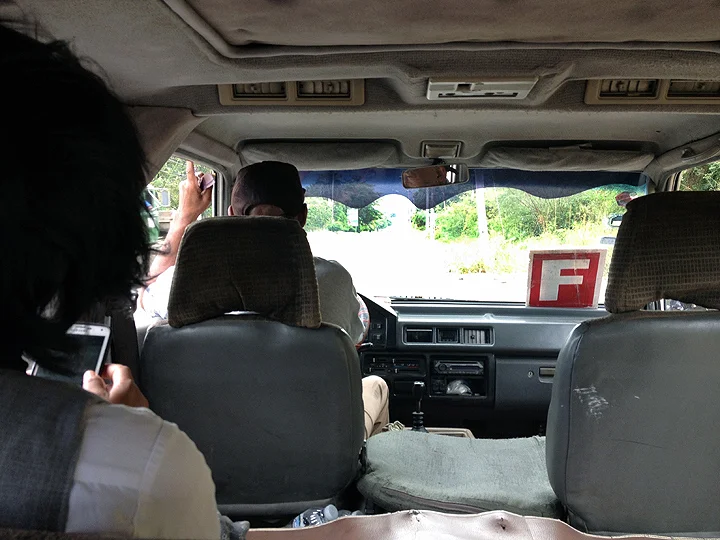 We needed to get beyond the resort gates. We walked out to the highway where we caught a 50-cent guagua (old minivan with extra seats added and the slider door removed) into the city of Puerto Plata.