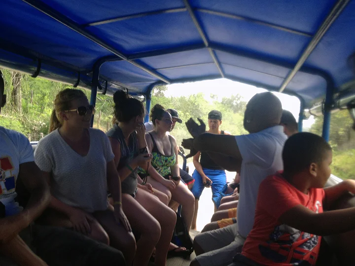 We got more touristy the next day, when Deb signed us up to visit the 27 waterfalls of Damajagua. Although a short distance from Puerto Plata, the tour bus took the scenic route over dirt roads through tiny settlements, stopping often to disembark and experience a view, a local farm, meet artisans, or visit a cigar maker (and always to purchase a keepsake).