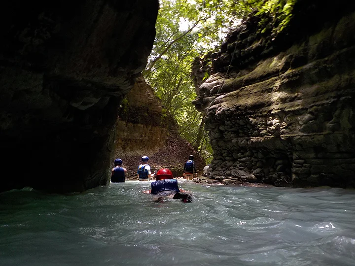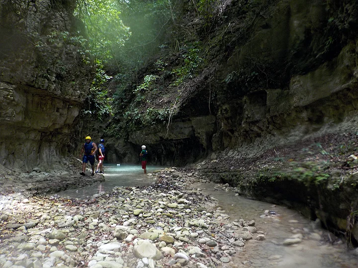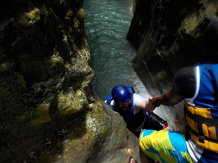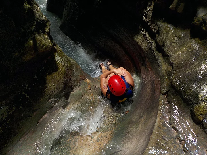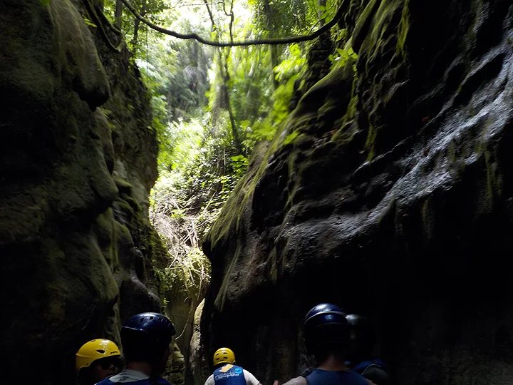 Although there are indeed 27 falls, we chose the most popular option and only visited the lowest seven. Guides led our group upstream like ungainly salmon through narrow canyons in the increasingly capacious river, identifying hand-holds to hoist trekkers up through the falls.
