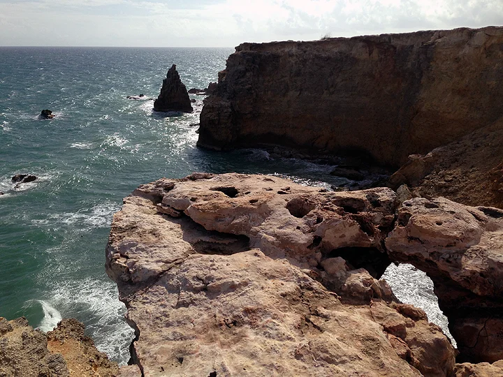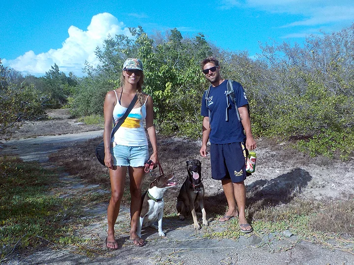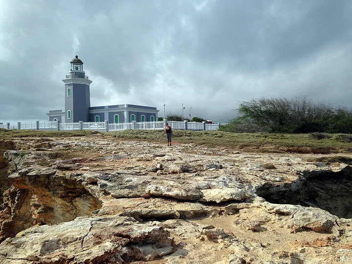 Rob and Crystal’s freehanded ways continued the next day anchored off Cabo Rojo, when they trundled us ashore with Jaela and Baxter for a hike up to the Los Morillos lighthouse. The 1882 lighthouse sits atop crescent limestone cliffs marking the extreme southwest corner of the island. Once at the top, we were blasted by the strong tradewinds we knew we’d experience once we left the shelter of the cape.