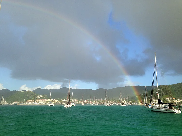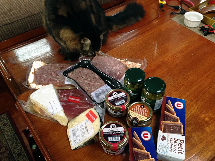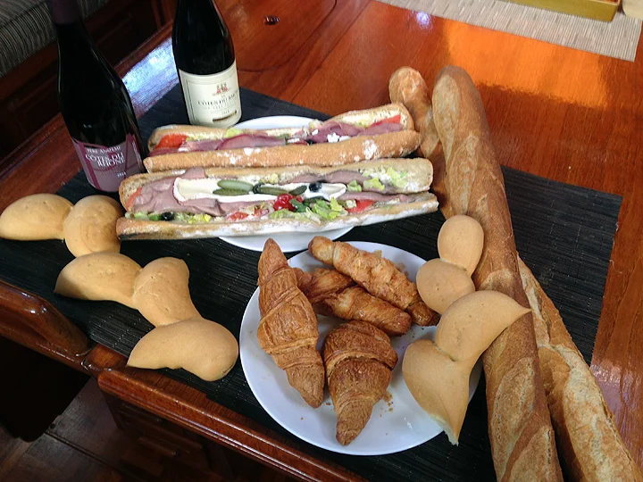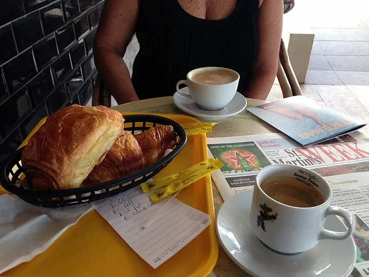 We anchored the following morning in Marigot Bay, St. Martin. Despite a healthy exhaustion, after checking in with customs and immigration, we immediately sought out food. For St. Martin, the northern side of this bifurcated island, is part of France. The local bakers know from croissants and baguettes and the supermarket (“Super U”, or to us, the “U”) was filled to the rafters with cheese, jambon, wine, and everything else you might associate with Gallic gastronomy. (The southern half of the island is Dutch, which is fine.)