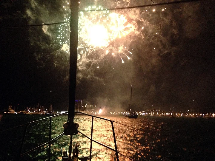 The happy foursome picked up right where we left off, albeit with far better dining options. We enjoyed a dockside lunch of steak frites (except for Brian, who opted for that French delicacy Spaghetti Carbonara, which we all agreed did look delicious) before retiring to S/V Delancey for an evening of champagne and fireworks.