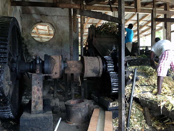 Our tour also took us to the River Rum Distillery, constructed in 1785 and still employing its original technology to produce 500 bottles every day. Naturally we purchased a bottle of its not-allowed-on-airplanes 97-proof white rum. This potent stuff permeated our plastic glassware such that its smell persisted after several washings.