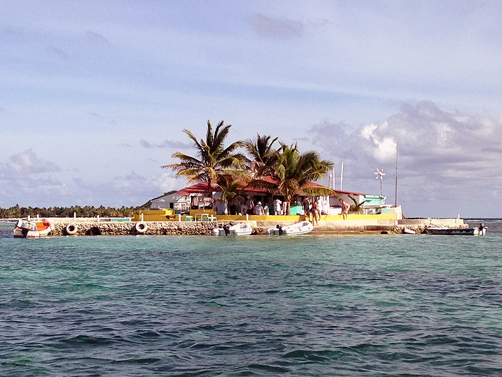 Back in the dink, we buzzed over to our second tiny island, albeit one of a very different vibe. Happy Island was built and named by a man named Janti. Its footprint a perfect square on the nautical charts, Janti built the island from discarded conch shells and concrete as a platform for his bar. It is indeed a happy island.